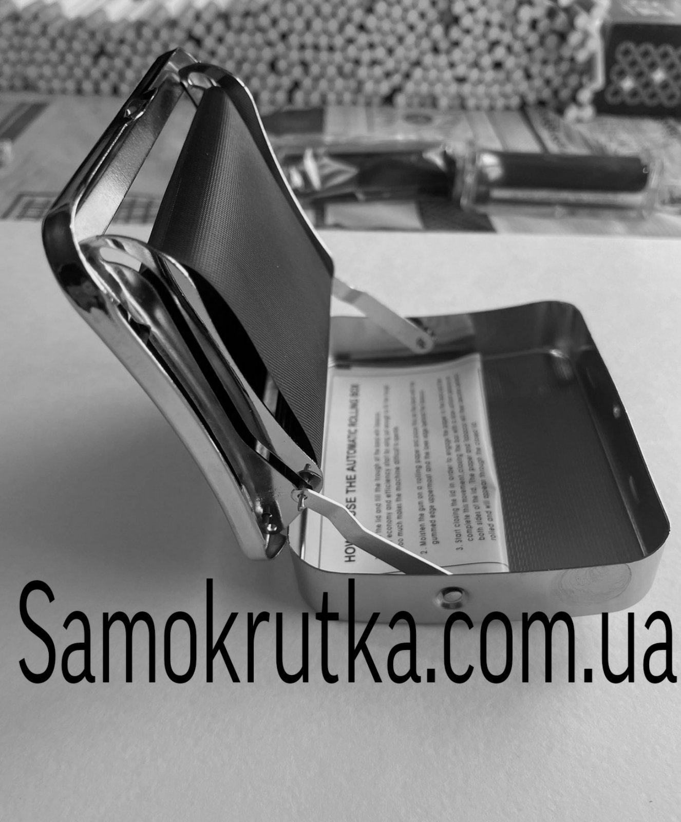 Машинка портсигар із вбудованою автоматичною системою для виготовлення і зберігання самокруток. Підходить під фільтра 8 мм і 6 мм. Бокс можна використовувати окремо як табакерку.
